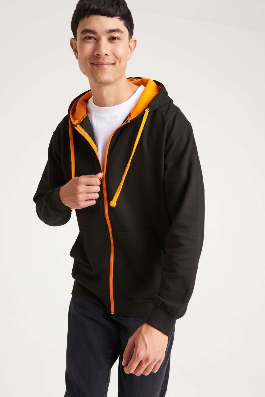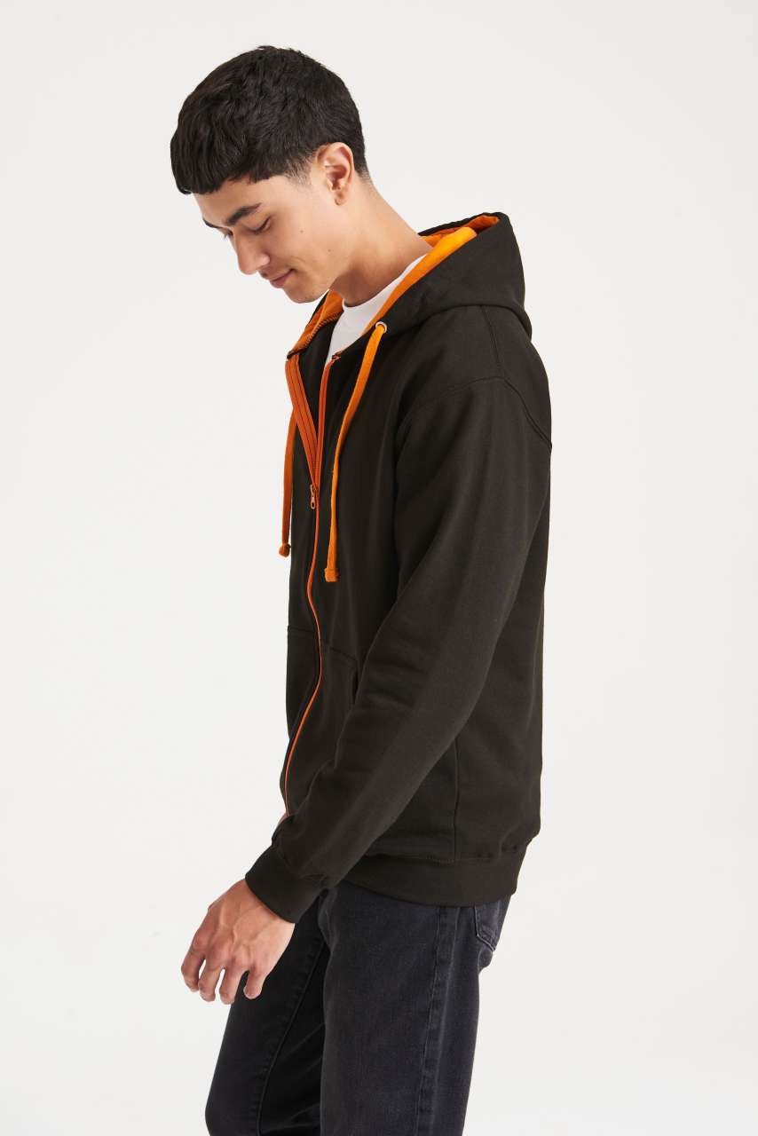 - Kapucňa z dvojitej látky s kontrastnou vnútornou stranou
